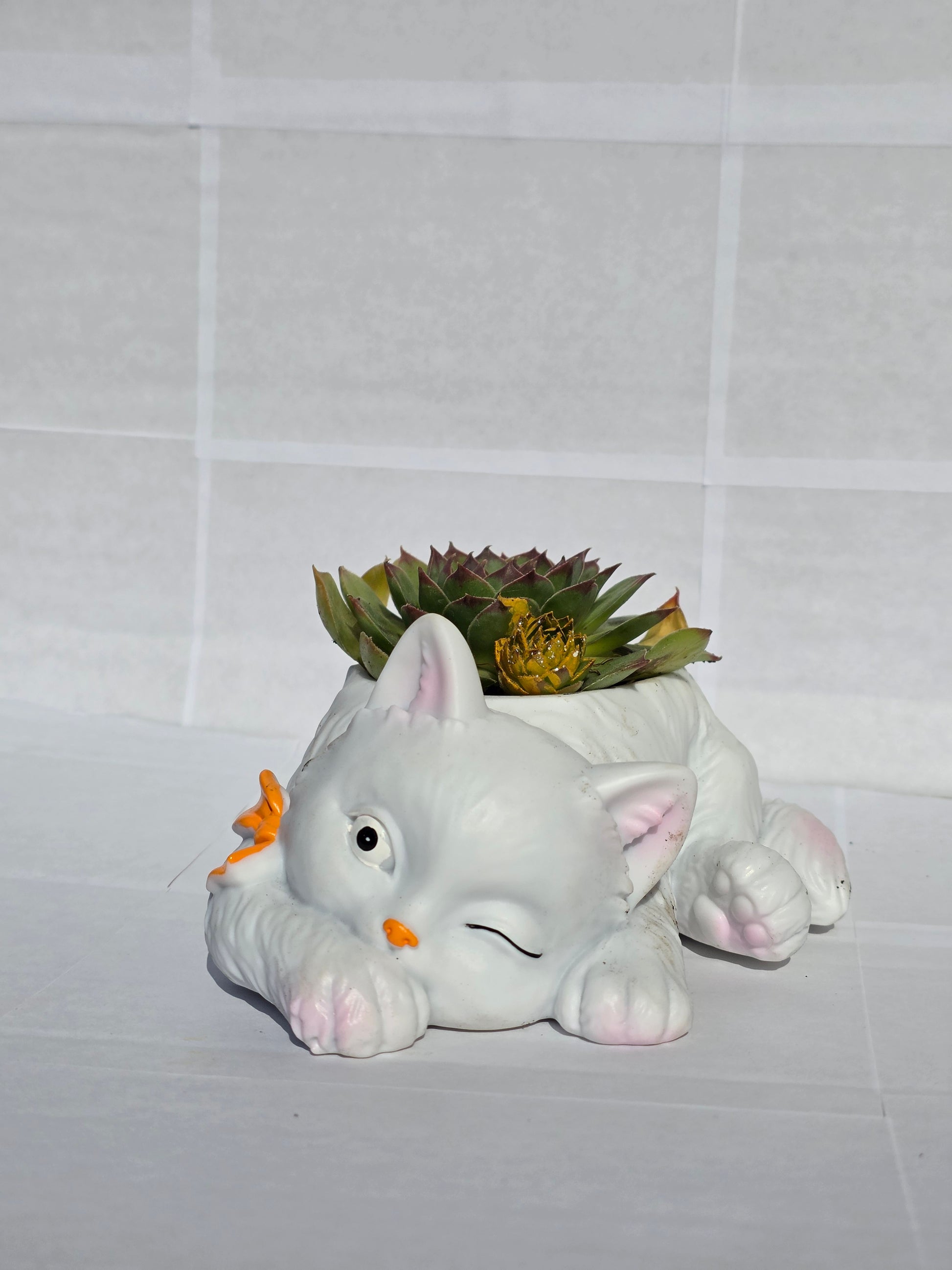 Álomcica és Éber Cica Virágtartók Kövirózsával