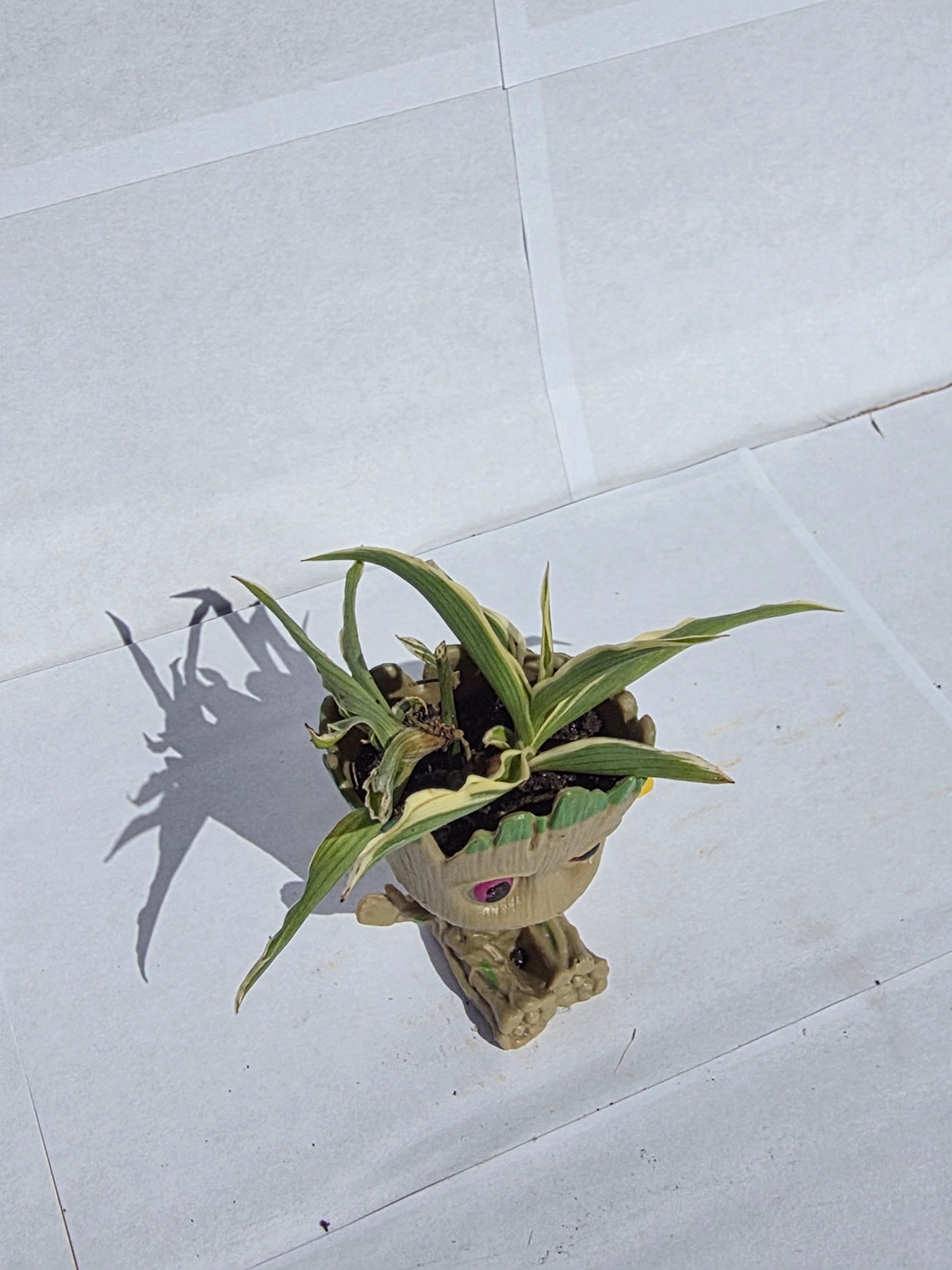 A Növény: A beültetett Pókpálma egy rendkívül dekoratív, gyorsan növő és szuper könnyen gondozható szobanövény. Élénk, csíkos levelei tökéletesen utánozzák Groot "haját".