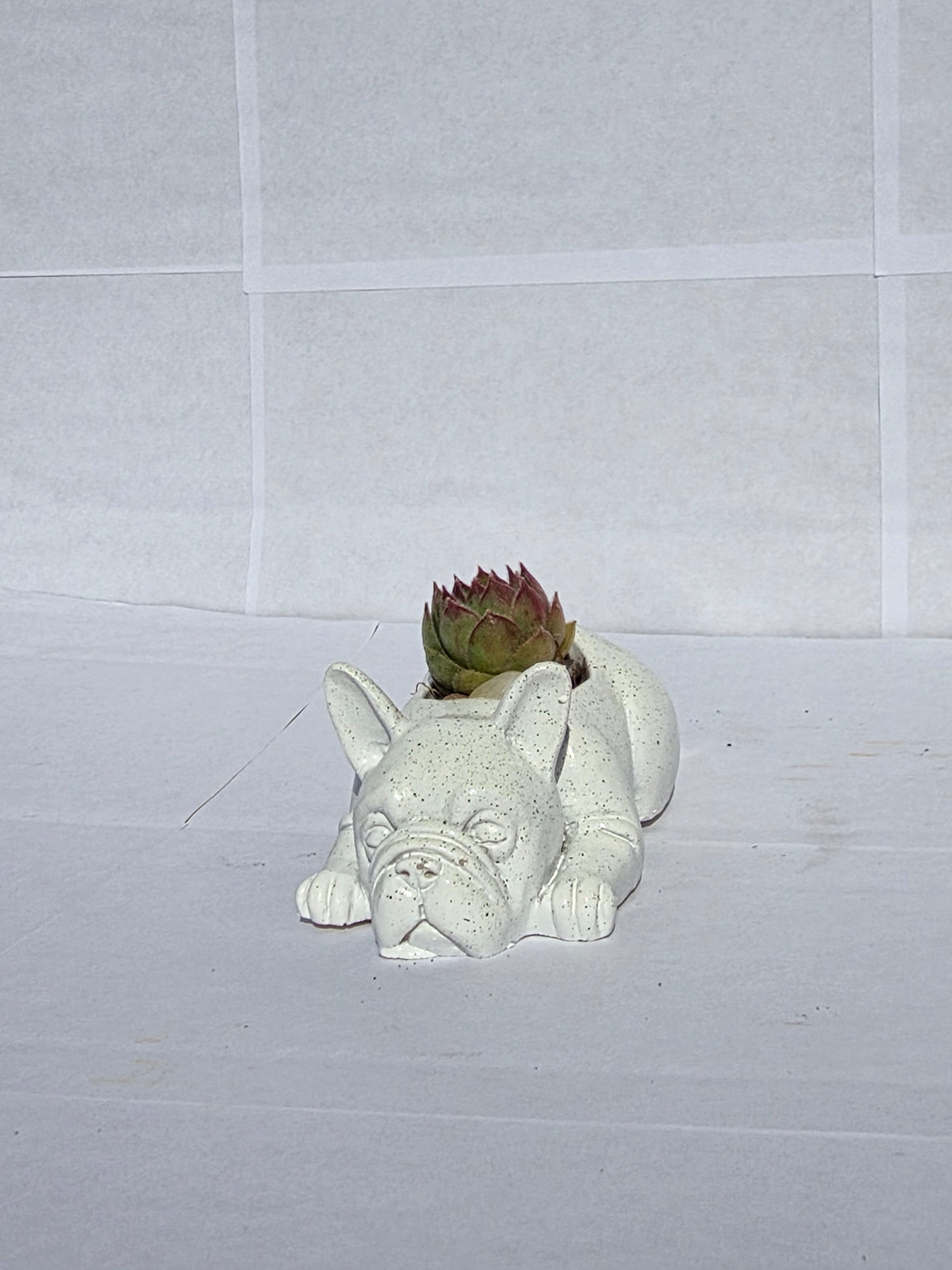 Morcos-Bájos Bulldog Virágtartó Kövirózsával