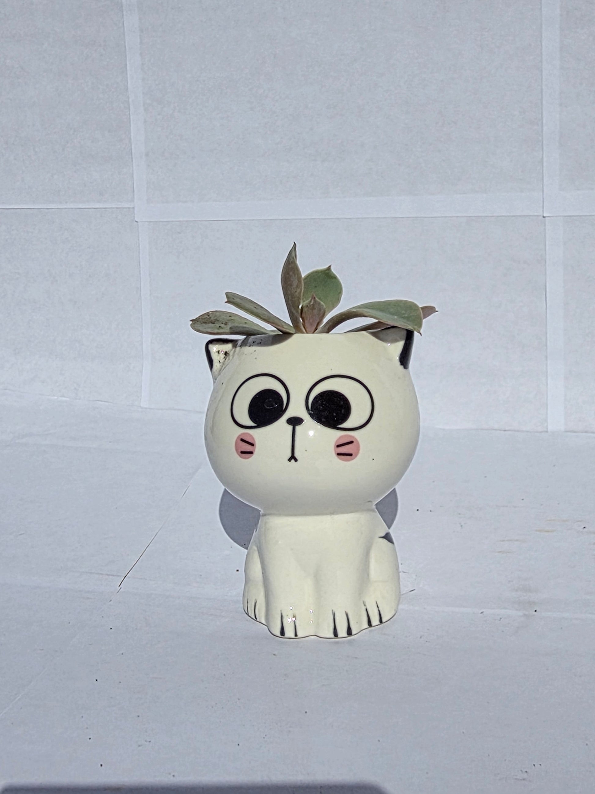 Nagyszemű, Kerekfejű Cica Virágtartó Echeveriával