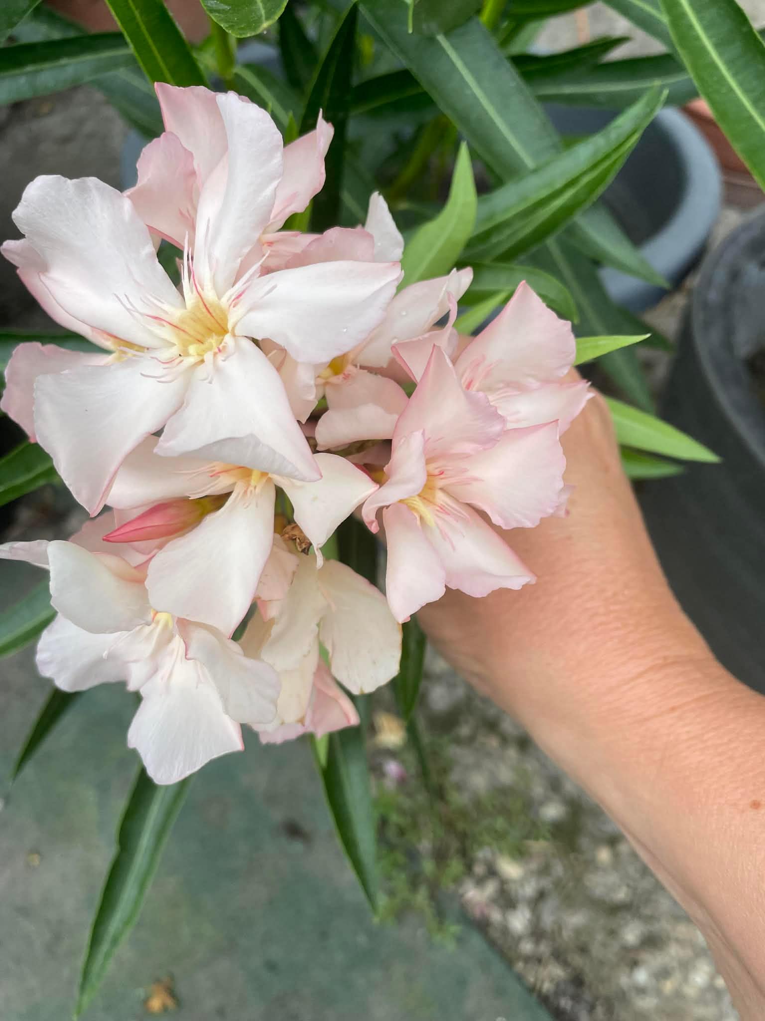 Virágzat: Egyszerű (szimpla), ötszirmú virágok. Színe egészen különleges: nagyon halvány, tiszta pasztellrózsaszín, középen sárgás torokkal. A szirmok formája elegáns és szabályos. 🌸💖